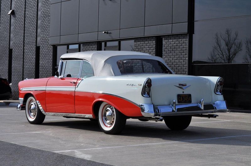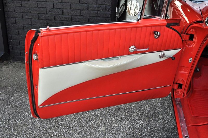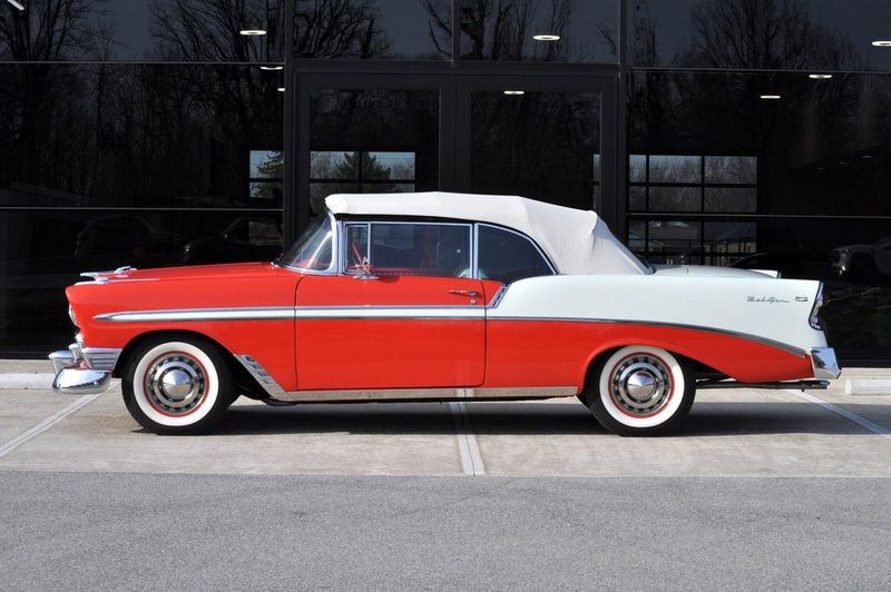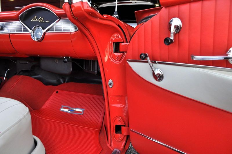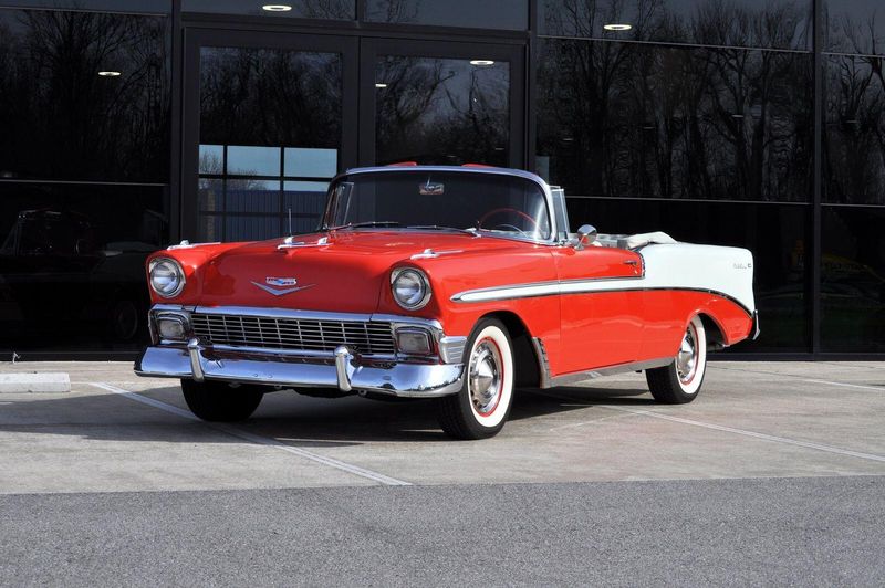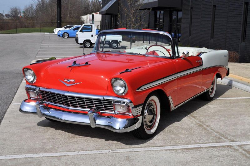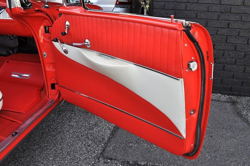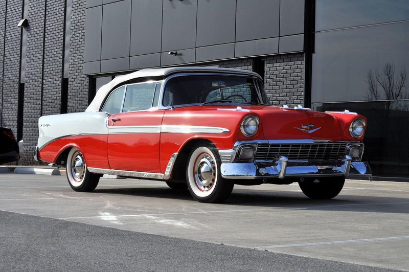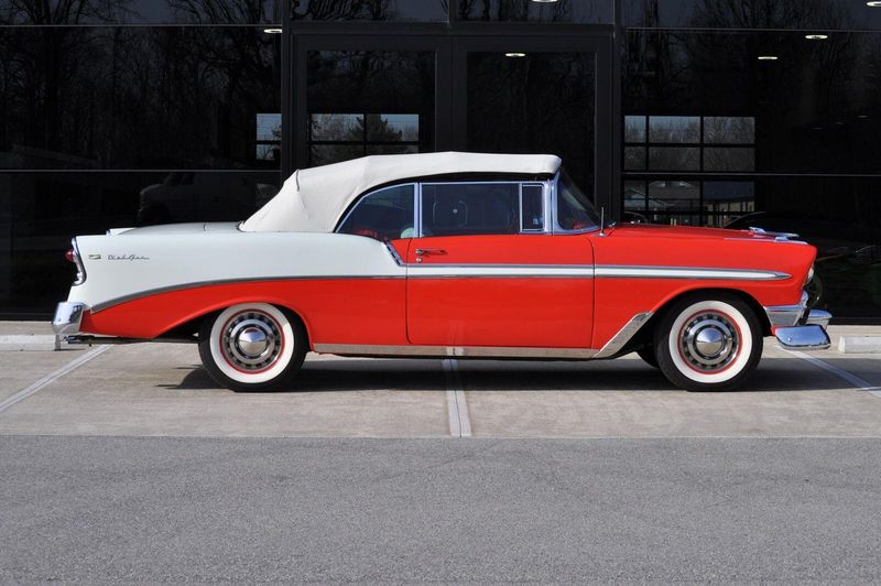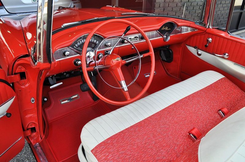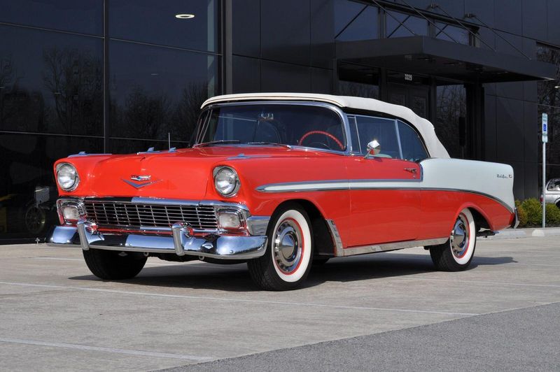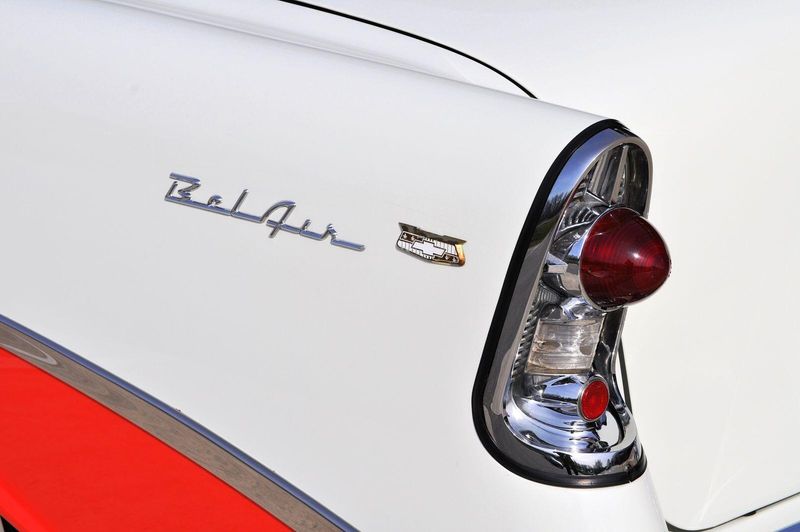 This striking 1956 Chevrolet Bel Air presents itself as a beautifully restored example of one of Americas most iconic classics. Finished in its factory-correct India Ivory over Matador Red, every color and trim detail matches the original codes, giving the car an authentic period look that immediately captures attention.