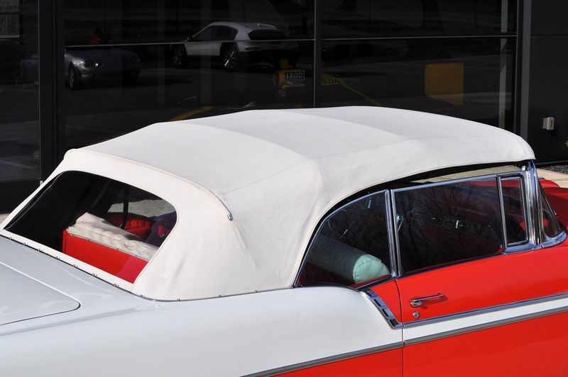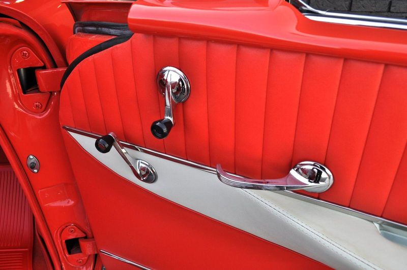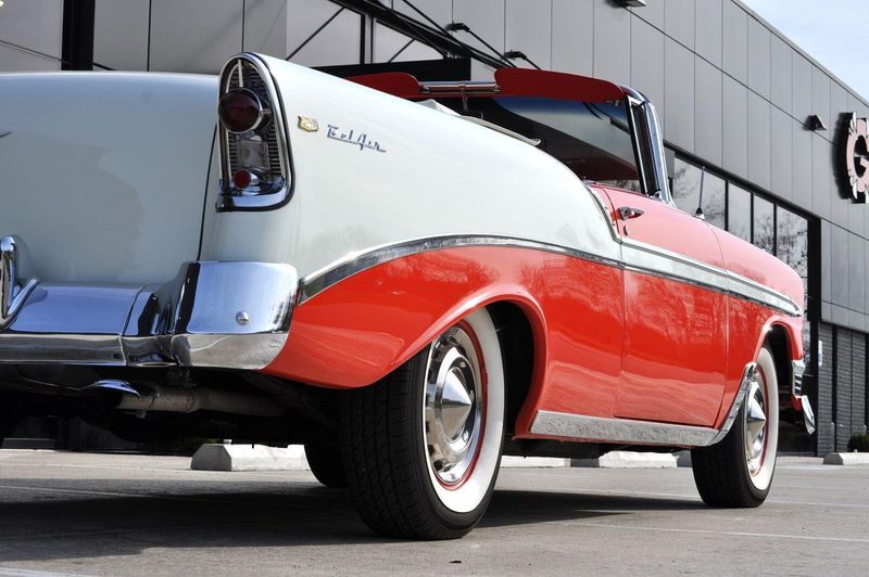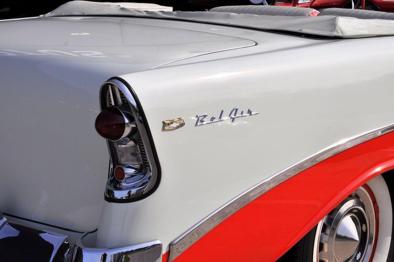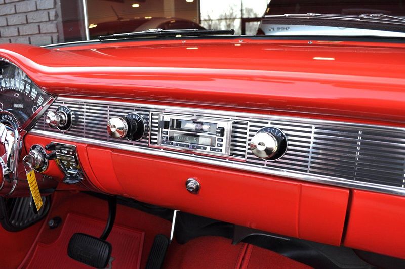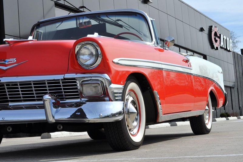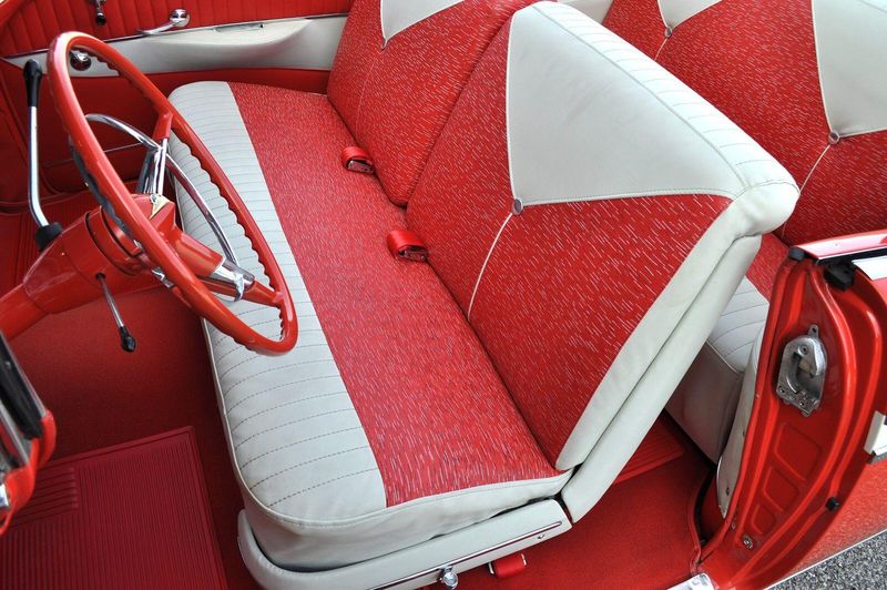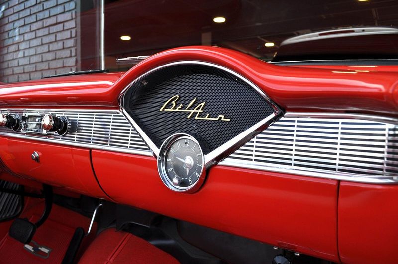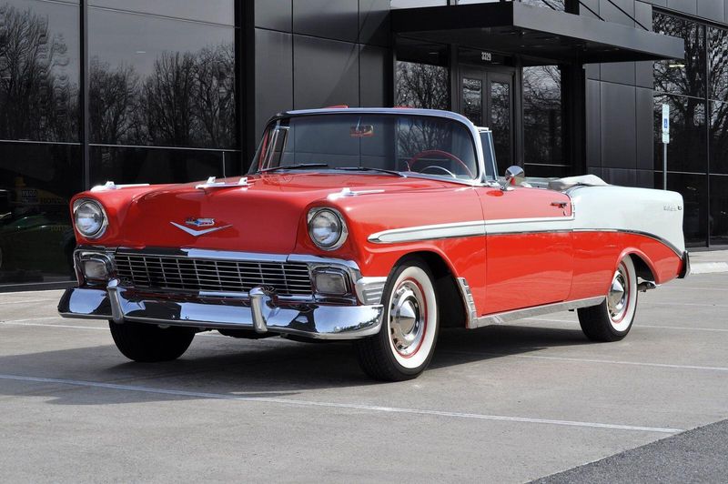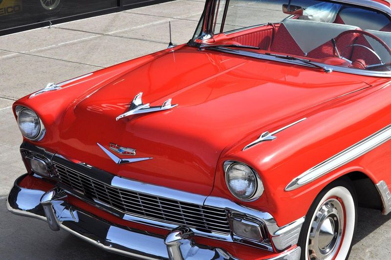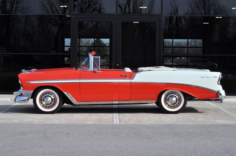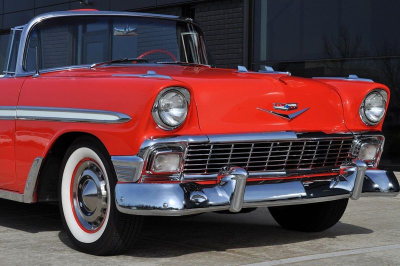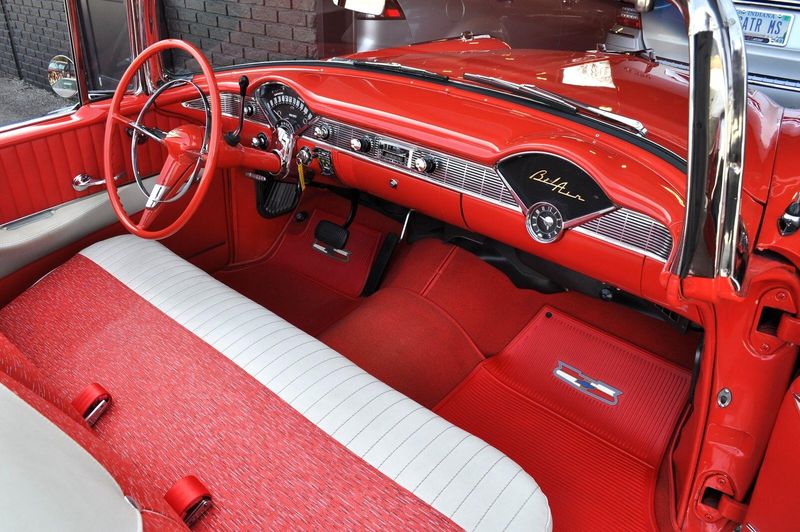 This striking 1956 Chevrolet Bel Air presents itself as a beautifully restored example of one of Americas most iconic classics. Finished in its factory-correct India Ivory over Matador Red, every color and trim detail matches the original codes, giving the car an authentic period look that immediately captures attention.