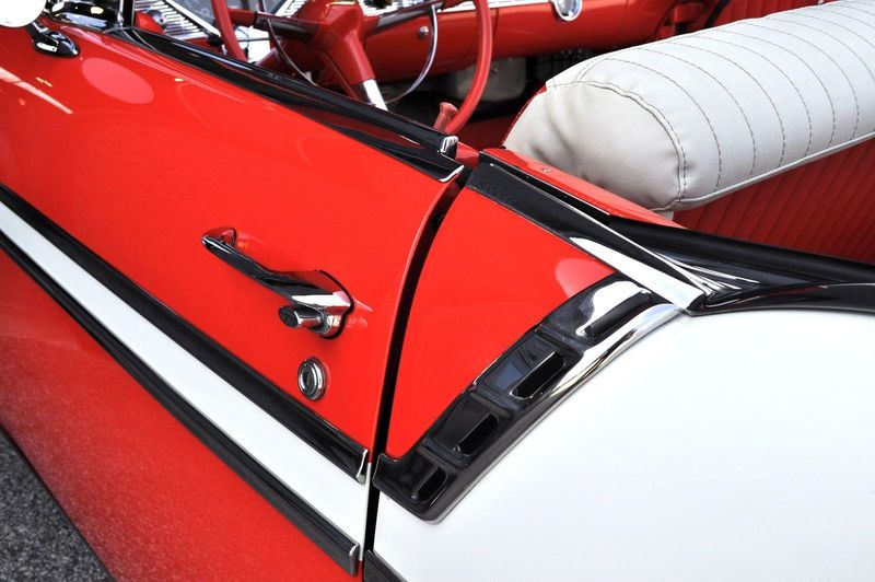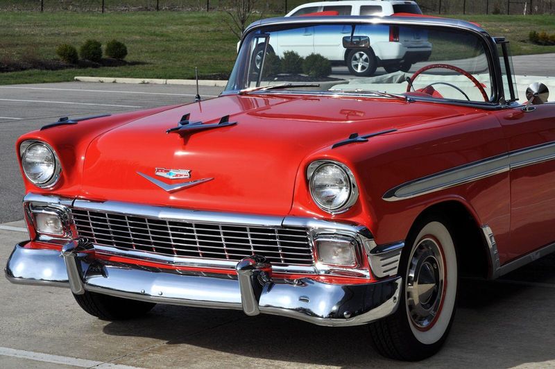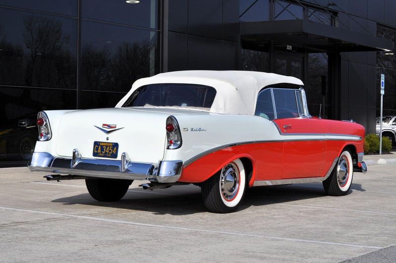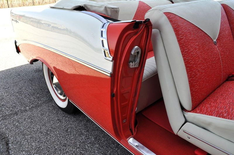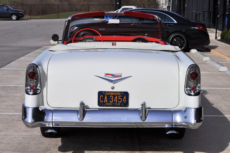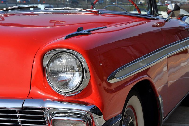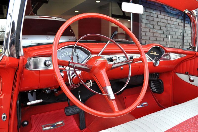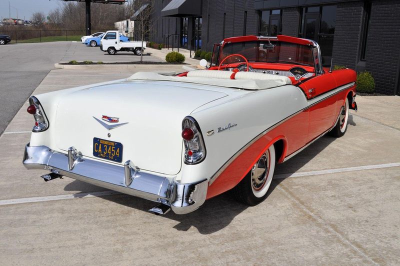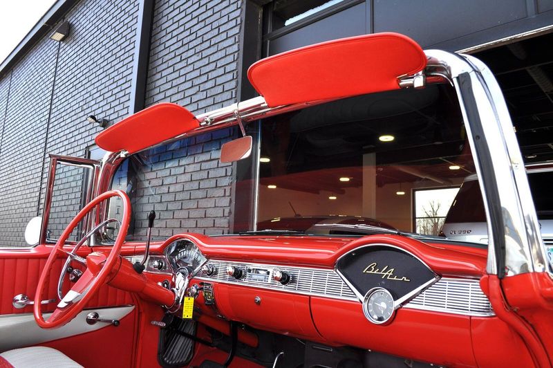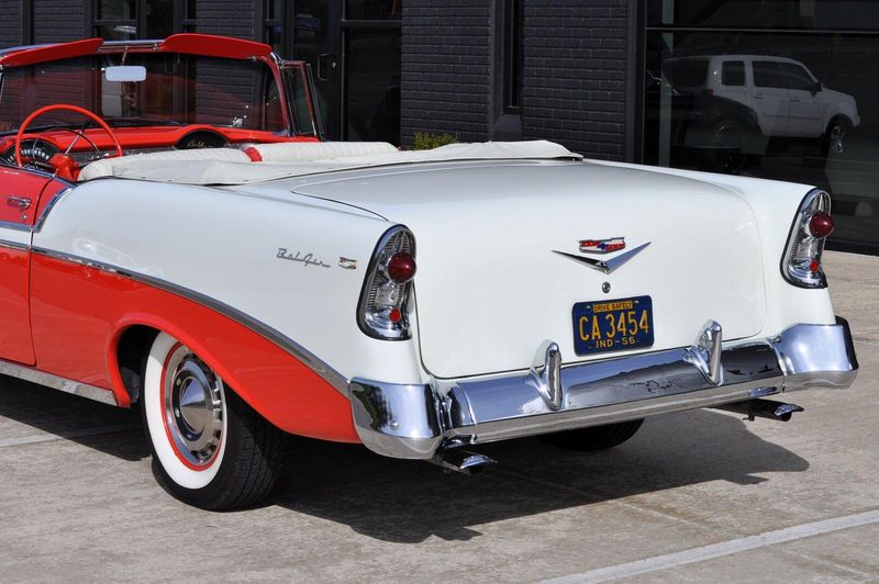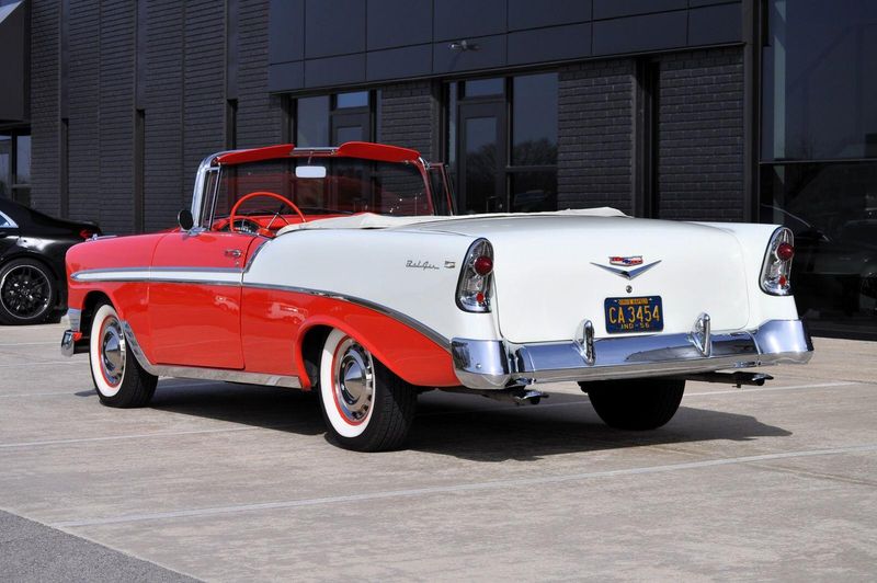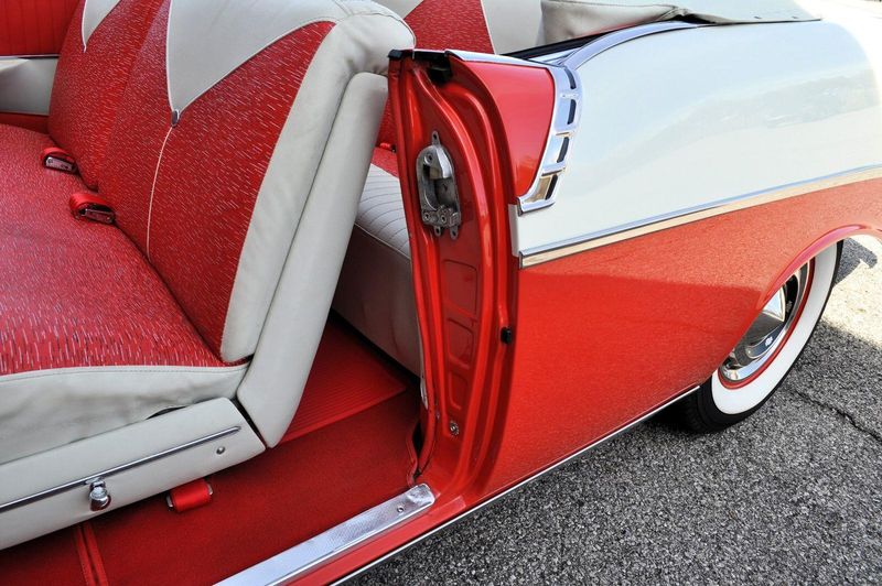 This striking 1956 Chevrolet Bel Air presents itself as a beautifully restored example of one of Americas most iconic classics. Finished in its factory-correct India Ivory over Matador Red, every color and trim detail matches the original codes, giving the car an authentic period look that immediately captures attention.