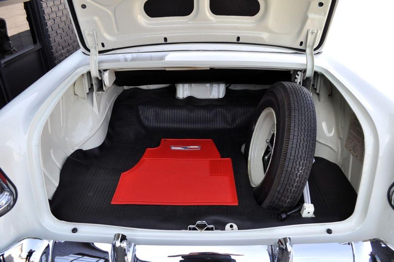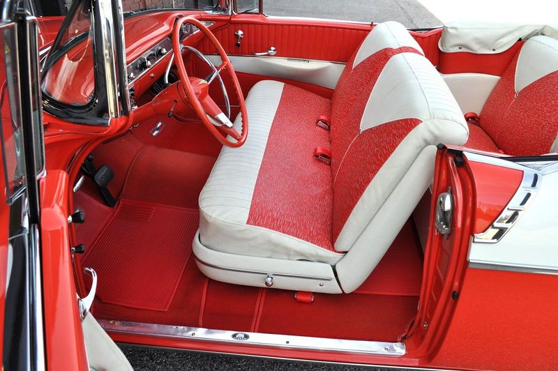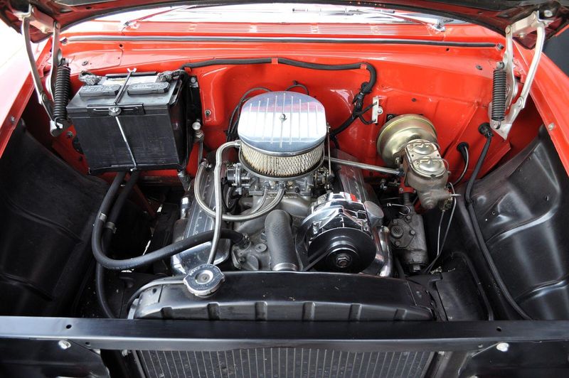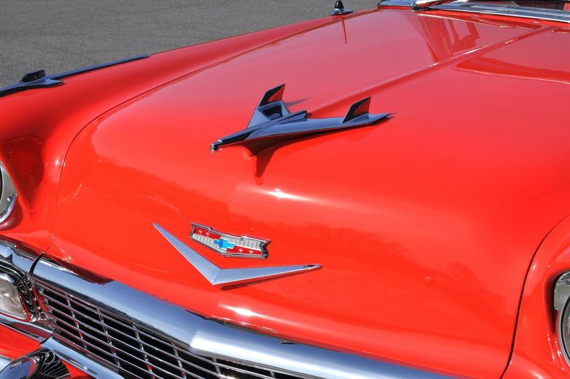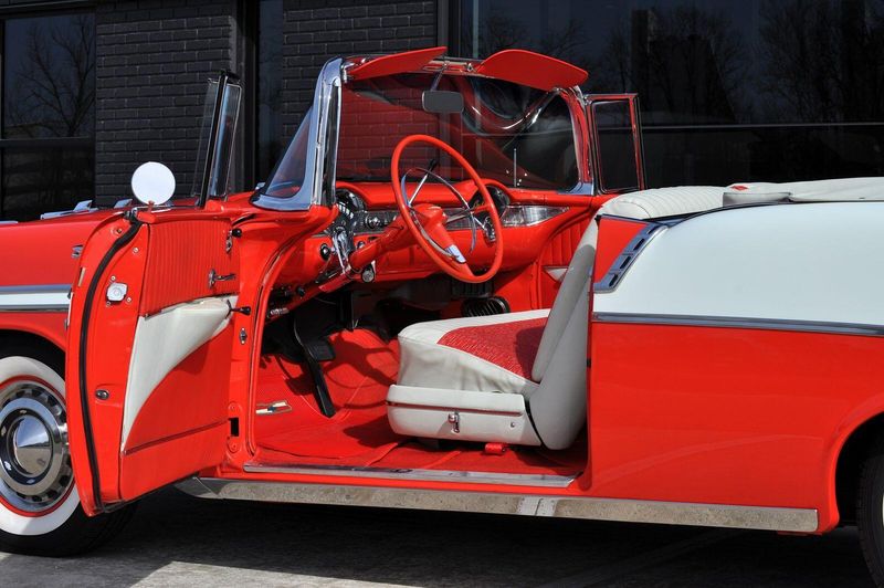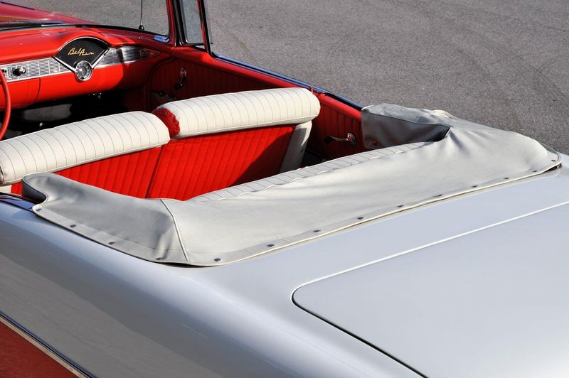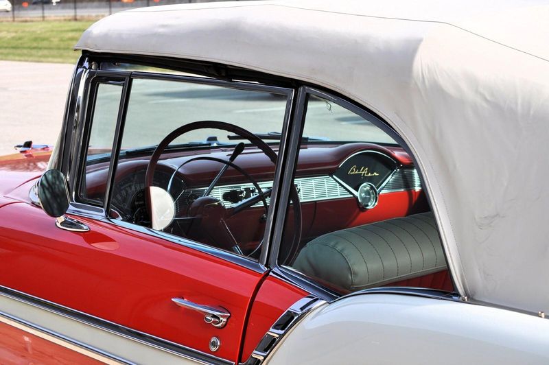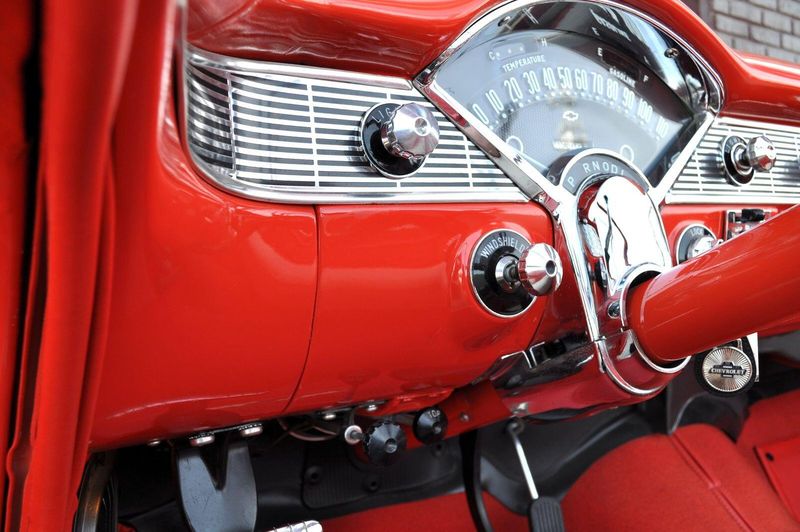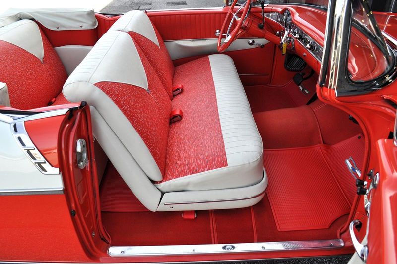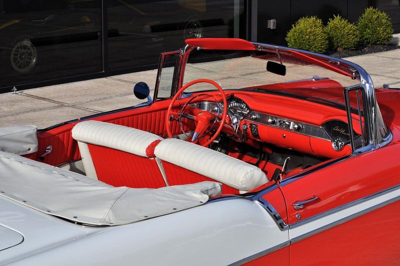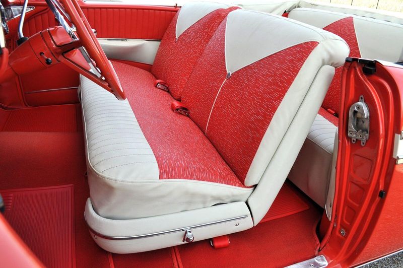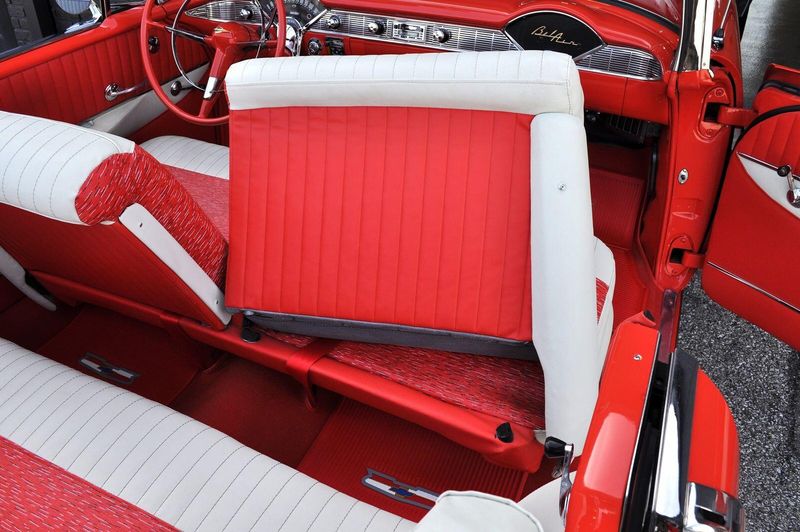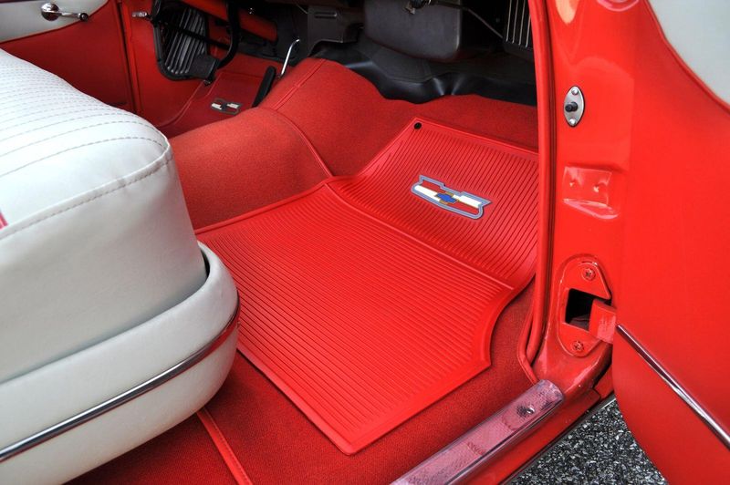 This striking 1956 Chevrolet Bel Air presents itself as a beautifully restored example of one of Americas most iconic classics. Finished in its factory-correct India Ivory over Matador Red, every color and trim detail matches the original codes, giving the car an authentic period look that immediately captures attention.