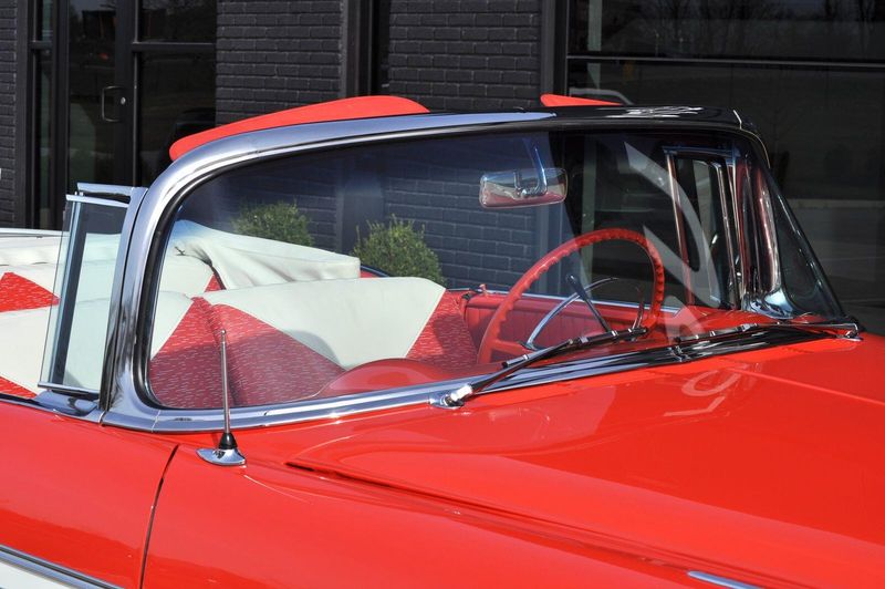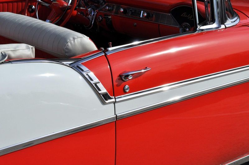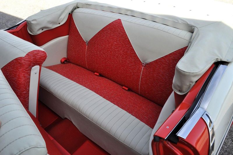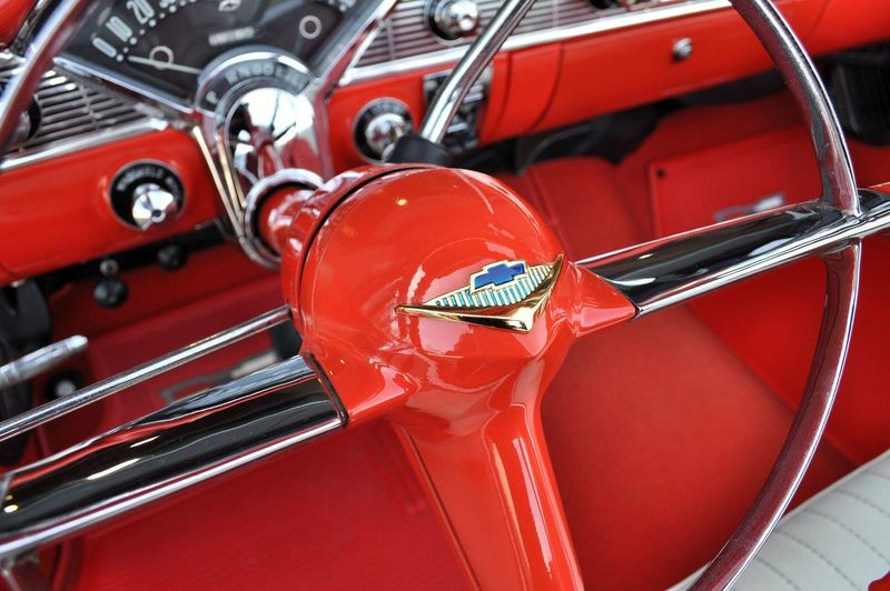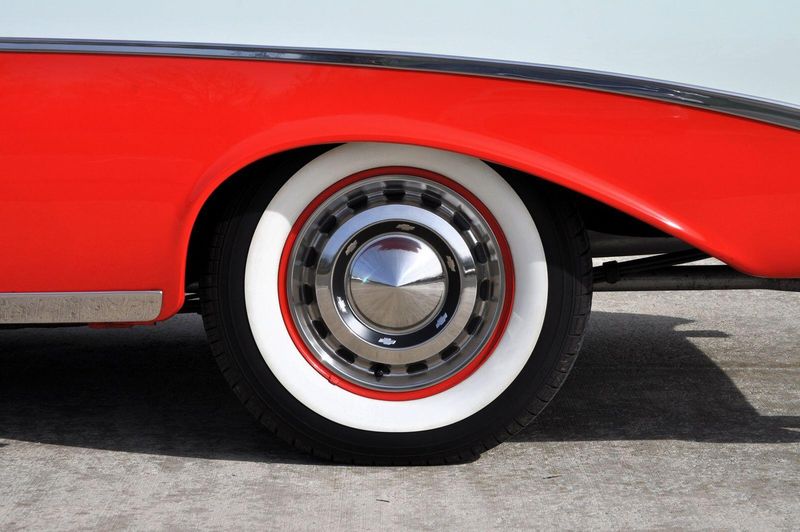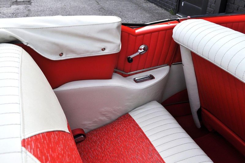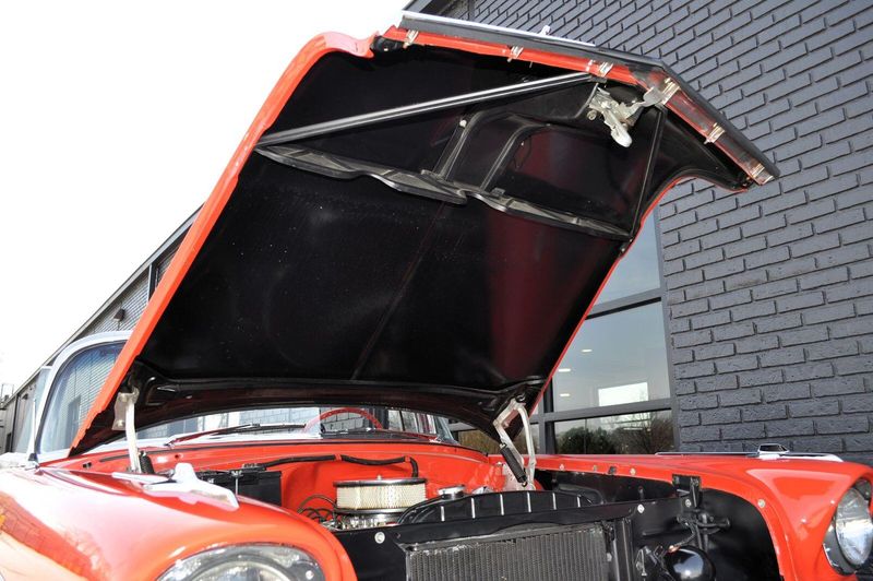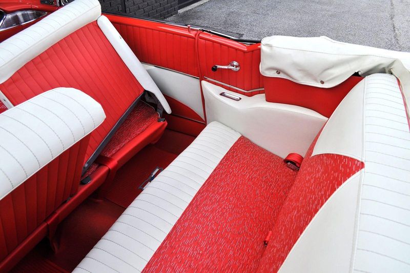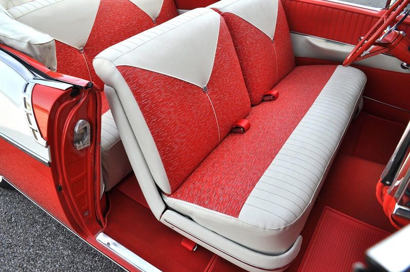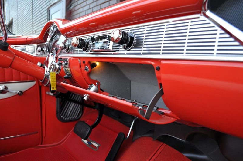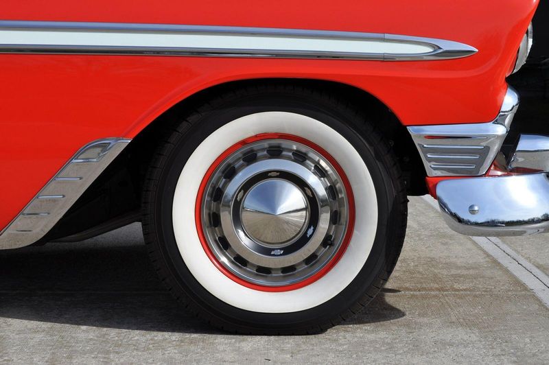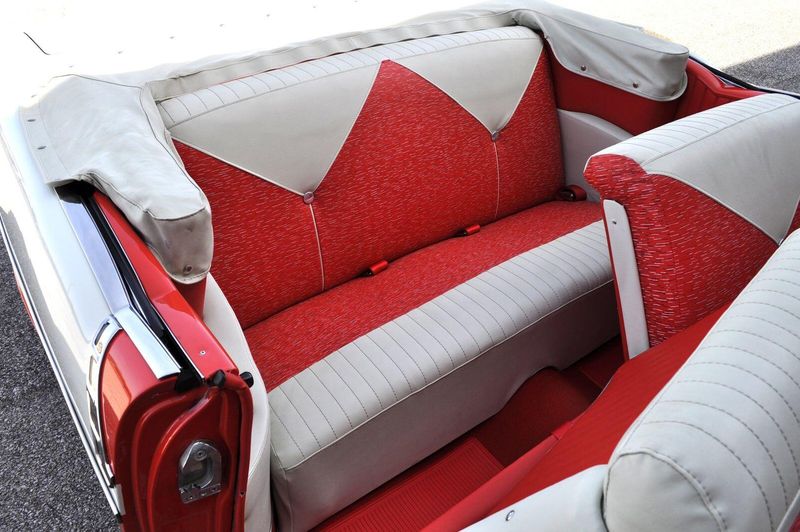 This striking 1956 Chevrolet Bel Air presents itself as a beautifully restored example of one of Americas most iconic classics. Finished in its factory-correct India Ivory over Matador Red, every color and trim detail matches the original codes, giving the car an authentic period look that immediately captures attention.