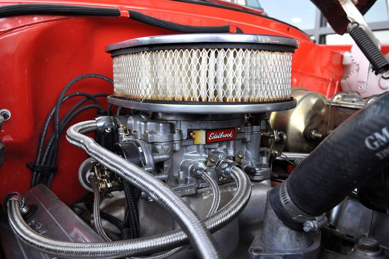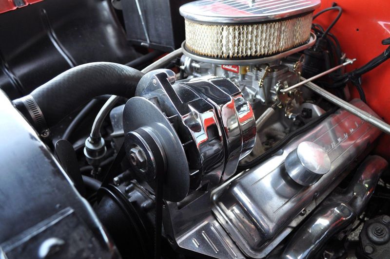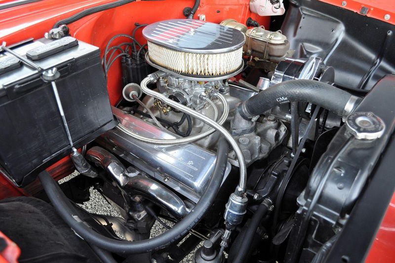 Under the hood, this Bel Air blends vintage style with modern performance. Its powered by a strong 290-horsepower 2005 GM 350 crate engine, rebuilt and currently showing approximately 11,000 miles since completion. An Edelbrock zinc-coated 4-barrel carburetor and aluminum Edelbrock Performer intake help the small-block breathe efficiently, while a GM automatic overdrive drivetrain adds smooth, dependable cruising capability.