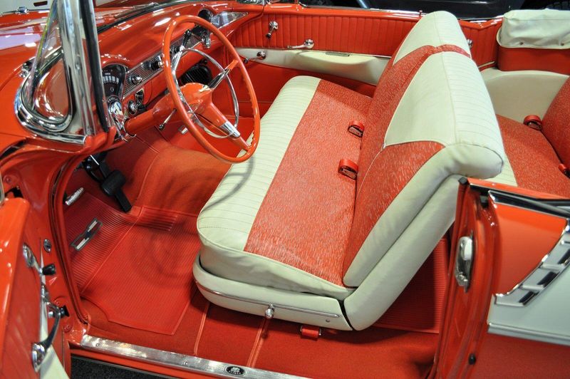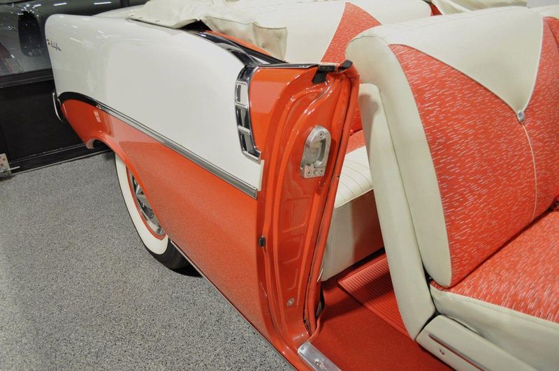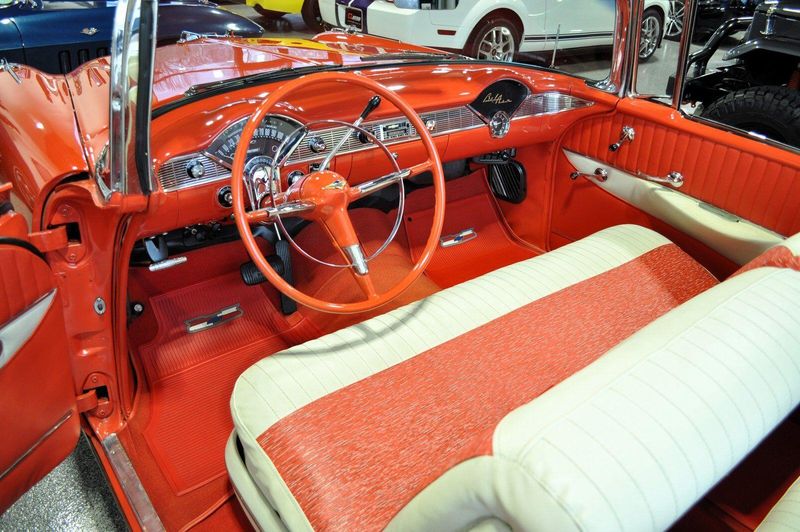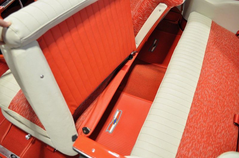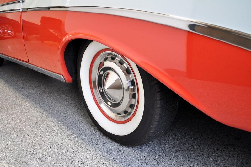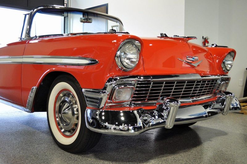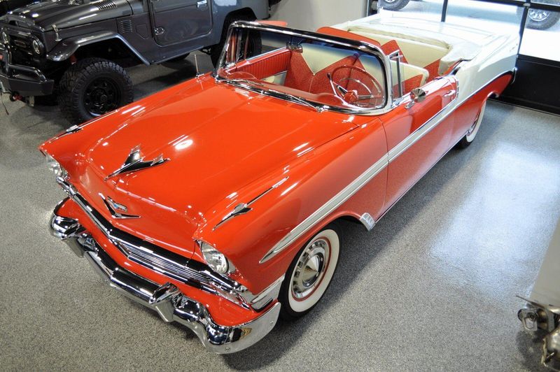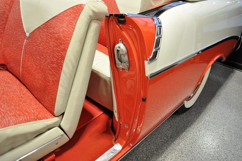 This striking 1956 Chevrolet Bel Air presents itself as a beautifully restored example of one of Americas most iconic classics. Finished in its factory-correct India Ivory over Matador Red, every color and trim detail matches the original codes, giving the car an authentic period look that immediately captures attention.