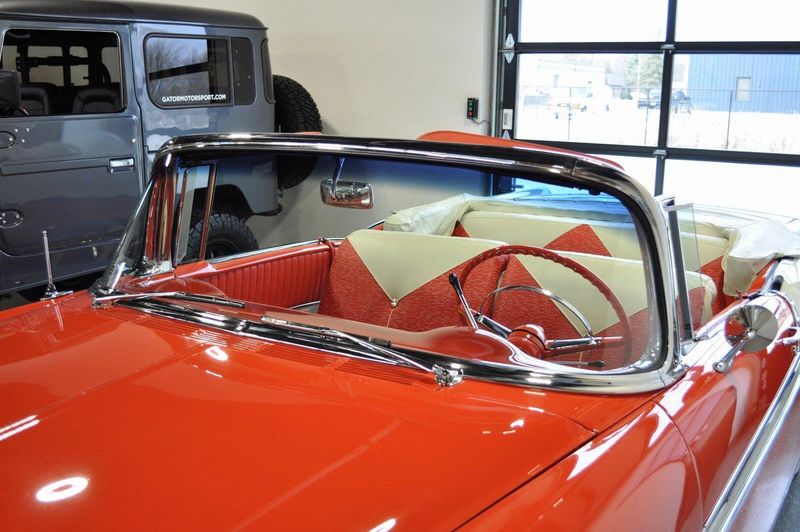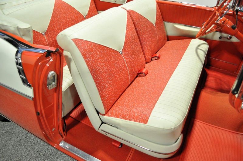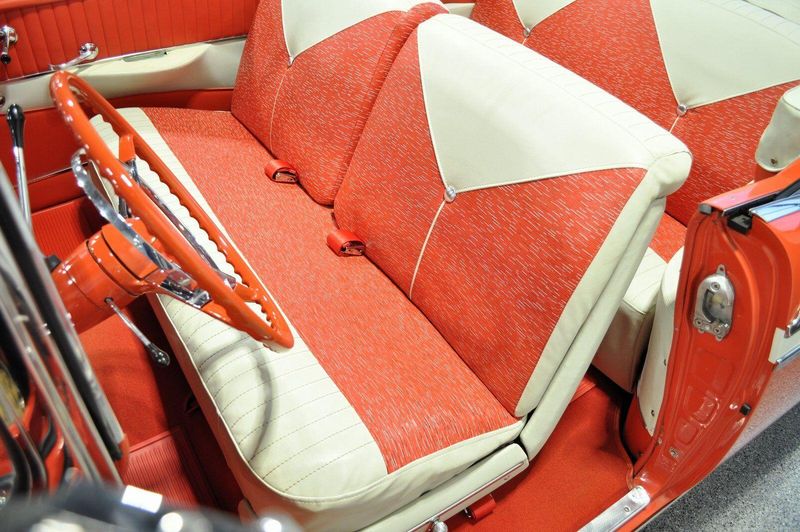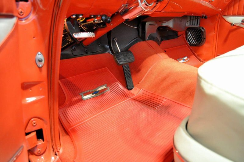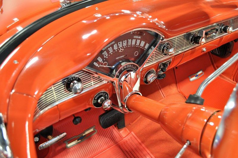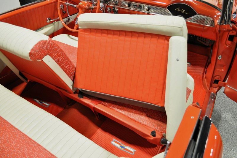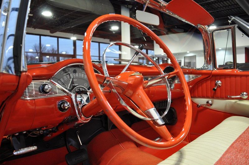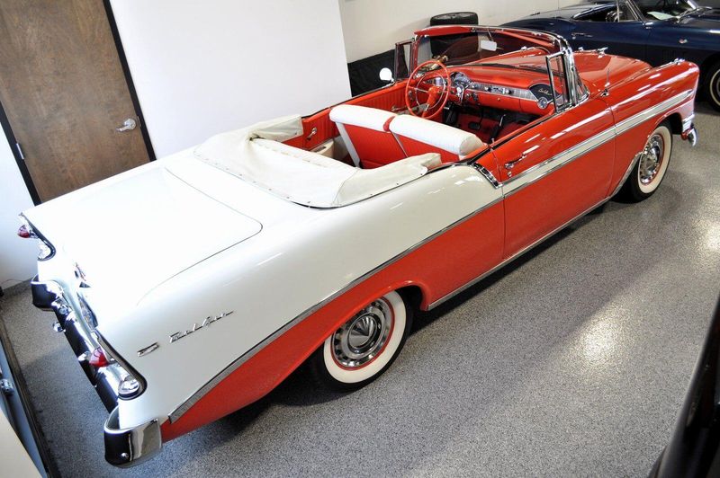 This striking 1956 Chevrolet Bel Air presents itself as a beautifully restored example of one of Americas most iconic classics. Finished in its factory-correct India Ivory over Matador Red, every color and trim detail matches the original codes, giving the car an authentic period look that immediately captures attention.