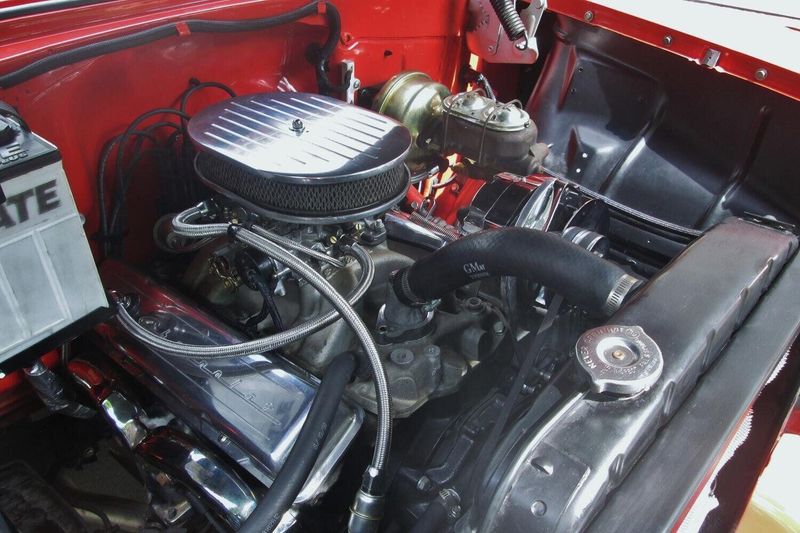 Under the hood, this Bel Air blends vintage style with modern performance. Its powered by a strong 290-horsepower 2005 GM 350 crate engine, rebuilt and currently showing approximately 11,000 miles since completion. An Edelbrock zinc-coated 4-barrel carburetor and aluminum Edelbrock Performer intake help the small-block breathe efficiently, while a GM automatic overdrive drivetrain adds smooth, dependable cruising capability.