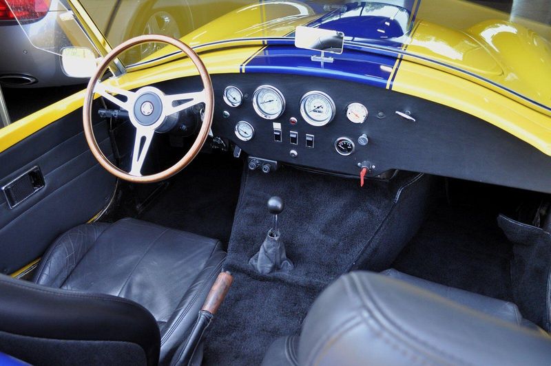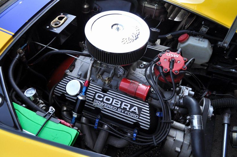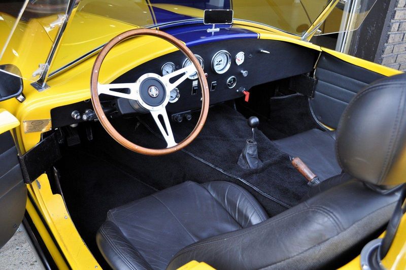 Every detail of this replica has been thoughtfully executed to honor the Cobra legacy, from its aggressive stance to the elegant curves of its hand-laid bodywork, finished in a deep, high-gloss paint that demands attention. The interior stays true to its race-inspired roots with a minimalist, driver-focused cockpit, where classic gauges and a five-speed manual gearbox invite full engagement. The result is an involving and raw driving experience, balanced by the accessibility and serviceability of the Mustang-sourced V8.